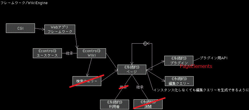 利用者はページにある情報を元に作られる。ページが他のページインスタンス宛に編集クエリーを作る。検索はプラグイン化する。